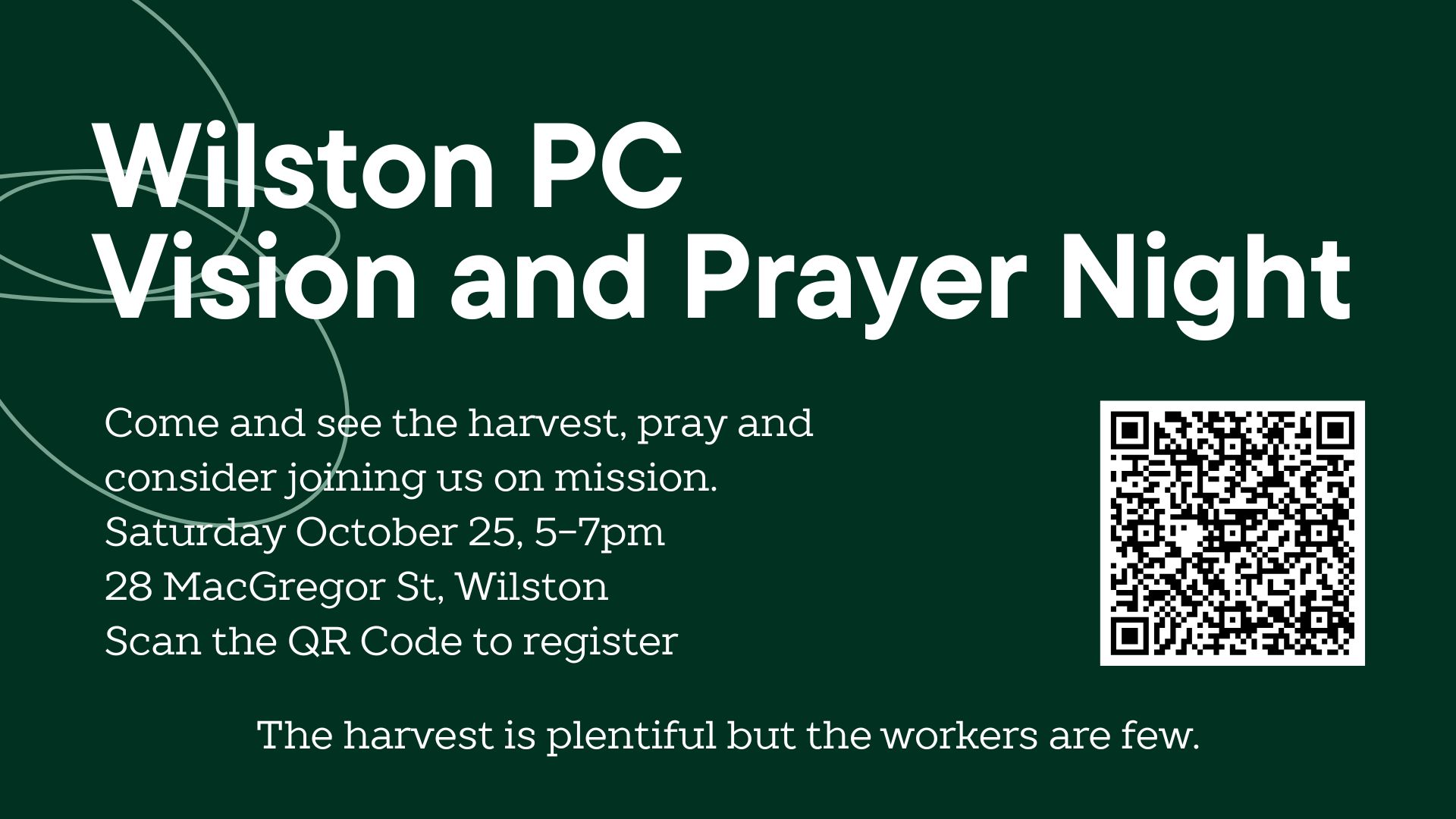 Join us on Saturday, October 25, for our Vision and Prayer Night to